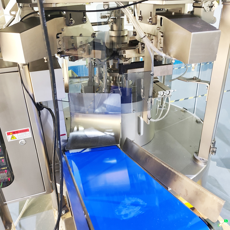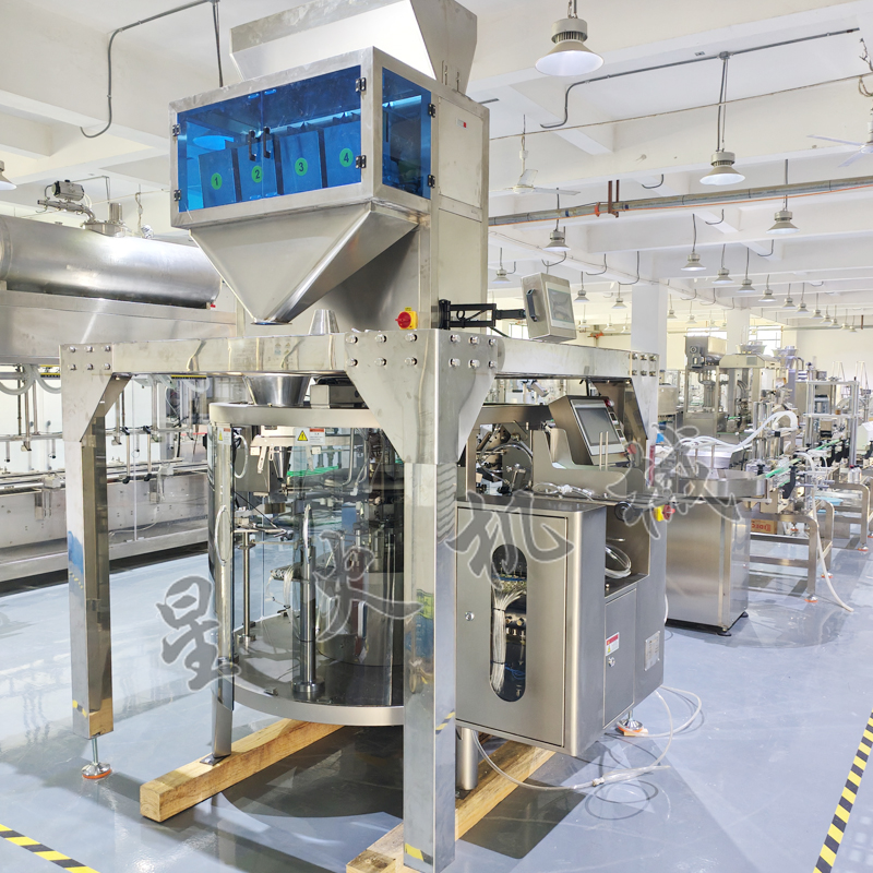 • 南京星火包裝機(jī)械有限公司推出了一款給袋式顆粒食品包裝機(jī),在機(jī)器頂部采用了一套四斗線性秤對物料進(jìn)行自動(dòng)稱重下料,圓形旋轉(zhuǎn)式八工位給袋裝置,自動(dòng)抓取提前預(yù)備好的預(yù)制