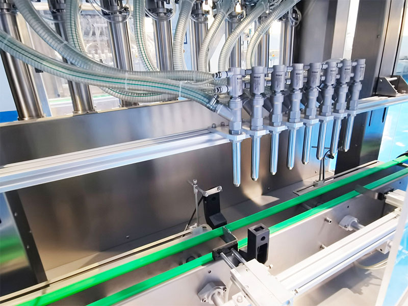 4、灌裝方式:該設(shè)備配備了多個灌裝閥,在經(jīng)過標(biāo)準(zhǔn)的參數(shù)設(shè)定后,多個灌裝頭能夠同時對準(zhǔn)與灌裝頭相等的容器口徑進(jìn)行充填運(yùn)動。